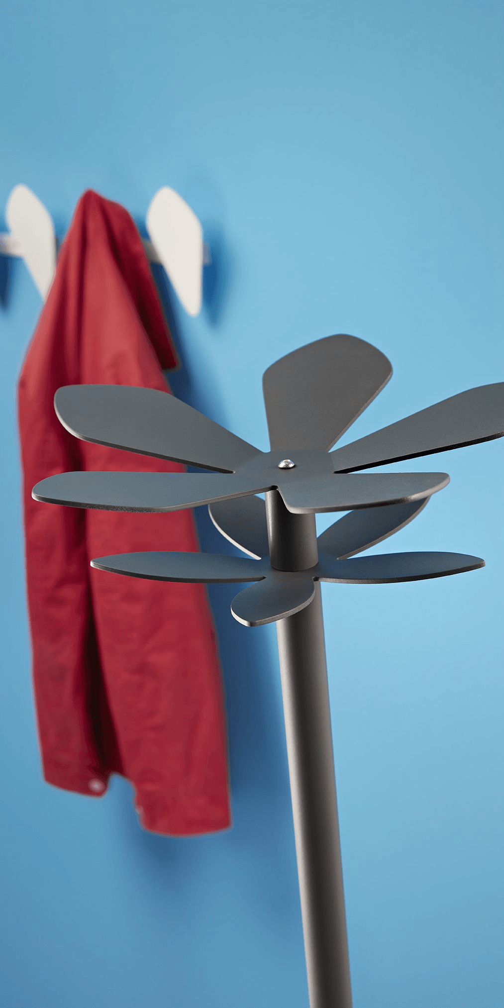 Colección de percheros de pie y mural. Disponible con o sin paragüero. Ideales tanto como para el mundo de la oficina como el habitat.