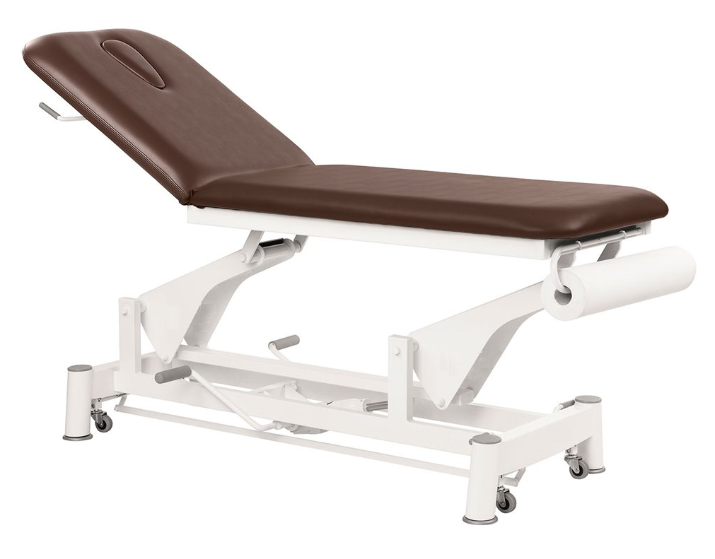 Camilla de reconocimiento hidráulica de dos secciones con subida con desplazamiento lateral y respaldo reclinable en negativo.CARACTERÍSTICAS: