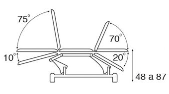 - Respaldo elevable/reclinable hidráulicamente de -10º a 75º