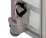 El carro de medicación unidosis disponen de 4 ruedas anti-hilos de Ø125mm, 2 de ellas con freno. Las 4 ruedas incluyen para-golpes.
