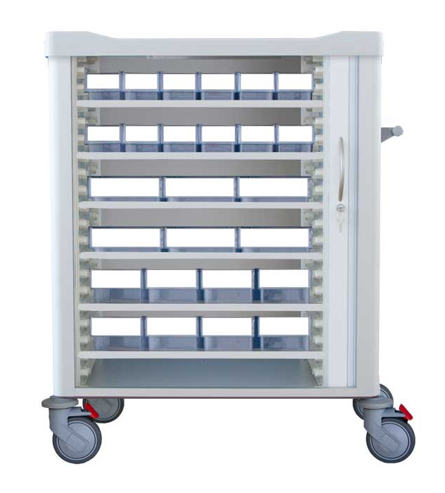 Los carros de reparto de medicación de dosis unitaria están adaptados a una amplia gama de cassettes, bandejas, cestas, cubetas para configurar el interior en base a las necesidades de los centros sanitarios. También son compatibles con múltiples accesorios y están disponibles en diferentes tamaños, todo esto hace que sean el mobiliario clínico ideal para las residencias y hospitales.Los carros hospitalarios de persiana están hechos de los siguientes materiales: