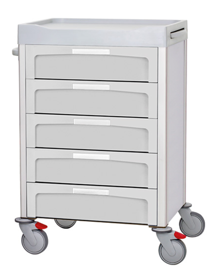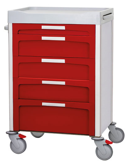 Carro perfecto para guardar y trasladar material sanitario de forma organizada en un centro hospitalario o geriátrico y así facilitar las tareas de curación del personal de enfermería, geriatría y auxiliares.