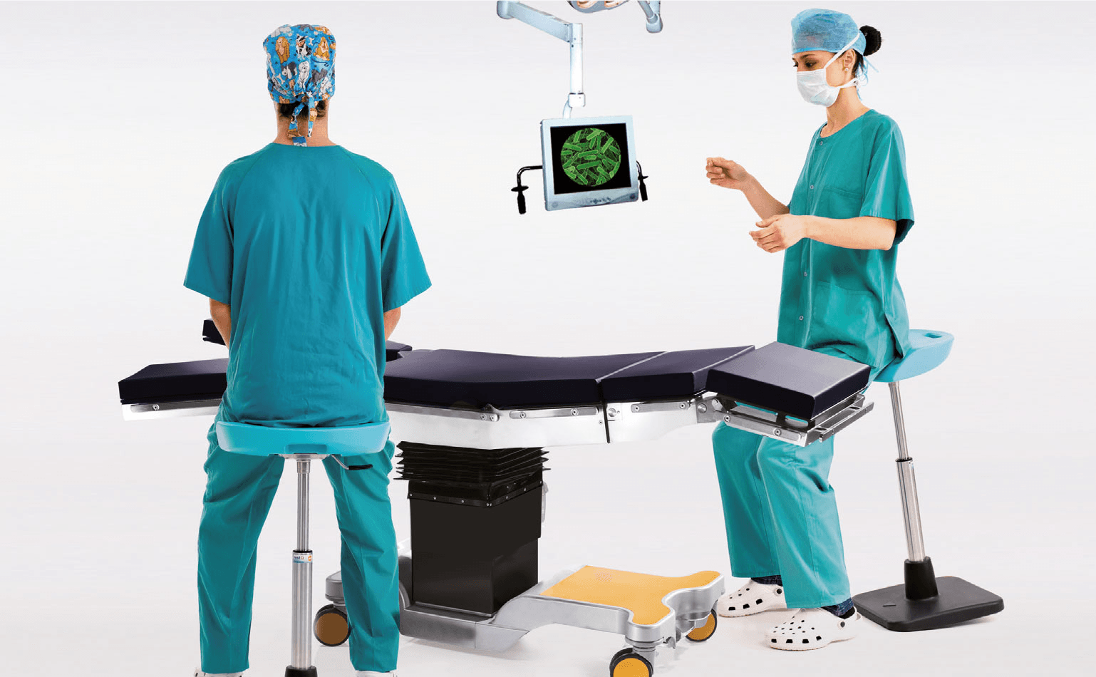 Asiento de poliuretano técnico, antibacteriano, desinfectable para quirófanos. Color estándar verde.