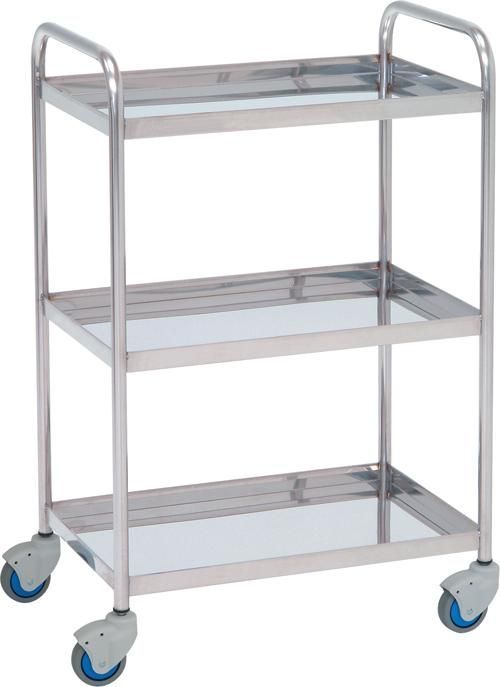 Tres estantes de acero inoxidable lisos.